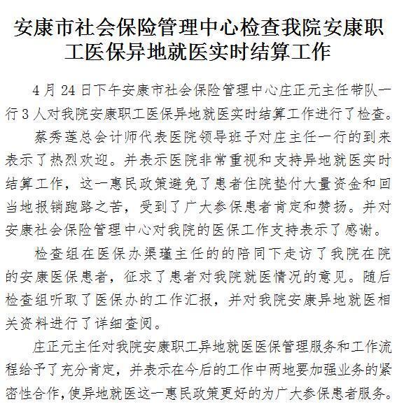 安康市社会保险管理中心检查啄木鸟 安康职工医保异地就医实时结算工作