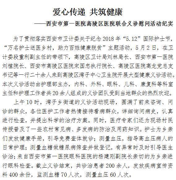 爱心传递 共筑健康 ——啄木鸟 高陵区医院联合义诊慰问活动纪实