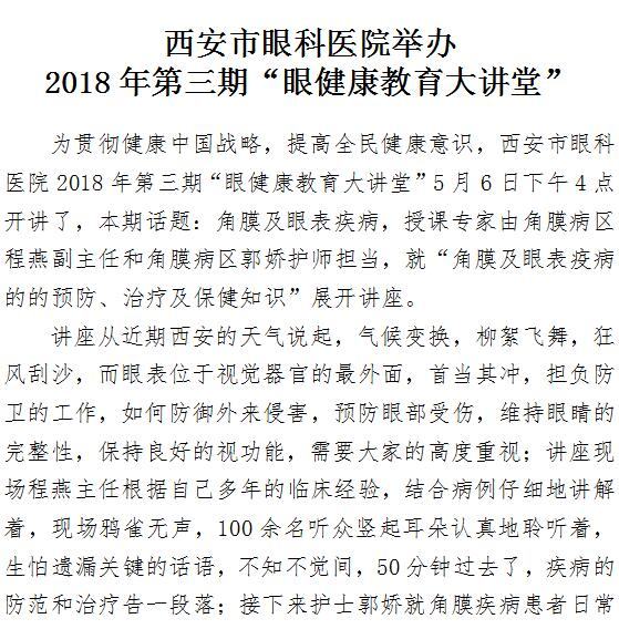 西安市眼科医院举办 2018年第三期“眼健康教育大讲堂”