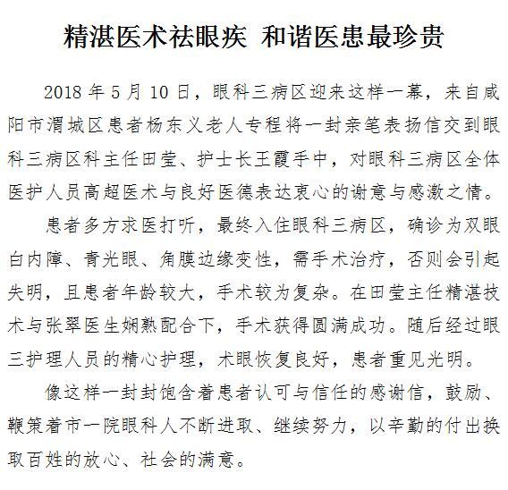 精湛医术祛眼疾 和谐医患最珍贵