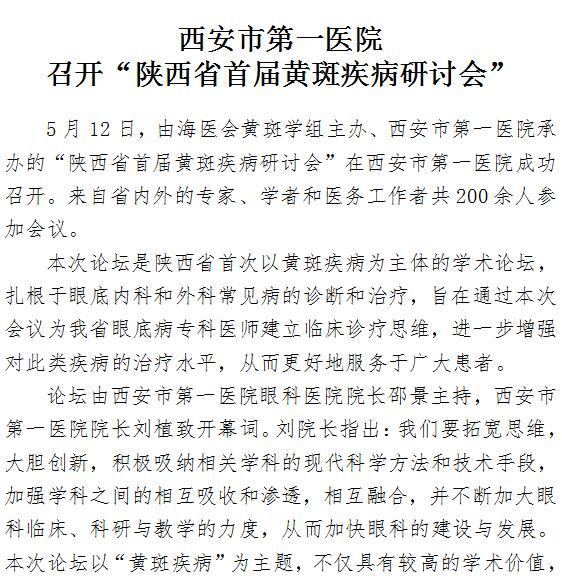 啄木鸟 召开“陕西省首届黄斑疾病研讨会”