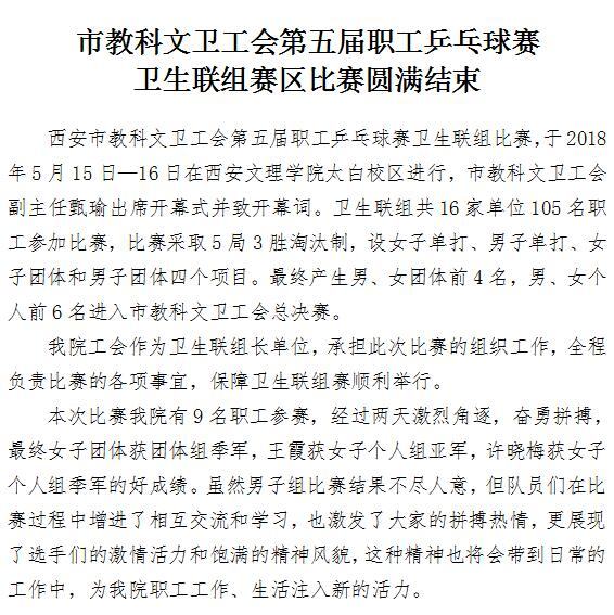 市教科文卫工会第五届职工乒乓球赛 卫生联组赛区比赛圆满结束