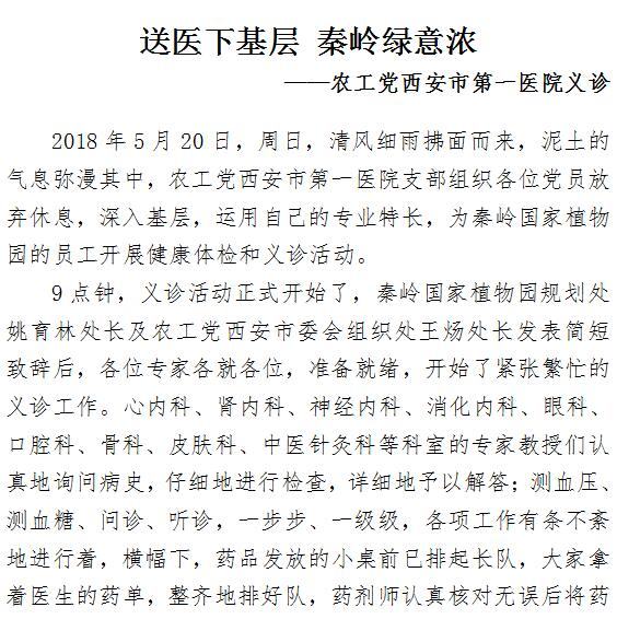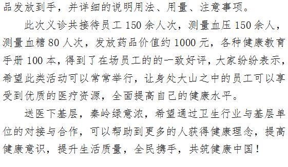 送医下基层 秦岭绿意浓 ——农工党啄木鸟 义诊