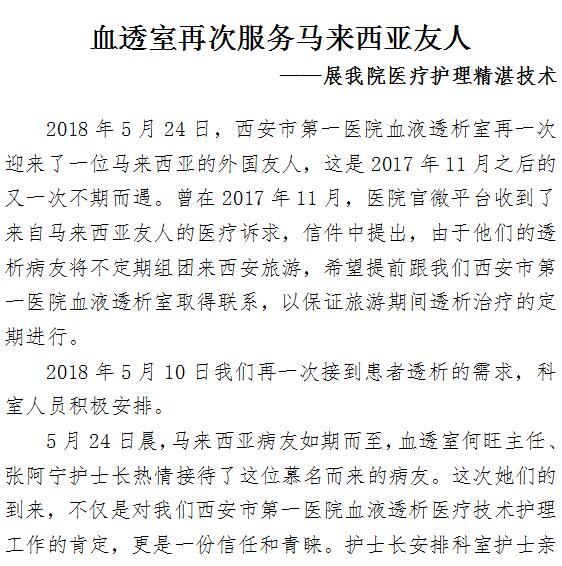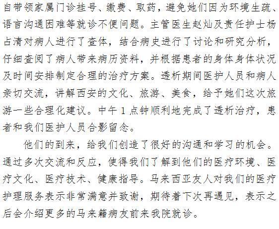 血透室再次服务马来西亚友人 ——展啄木鸟 医疗护理精湛技术
