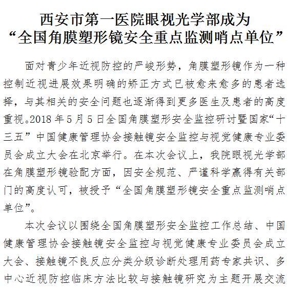 啄木鸟 眼视光学部成为 “全国角膜塑形镜安全重点监测哨点单位”