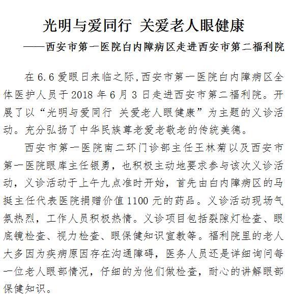 光明与爱同行 关爱老人眼健康 ——啄木鸟 白内障病区走进西安市第二福利院