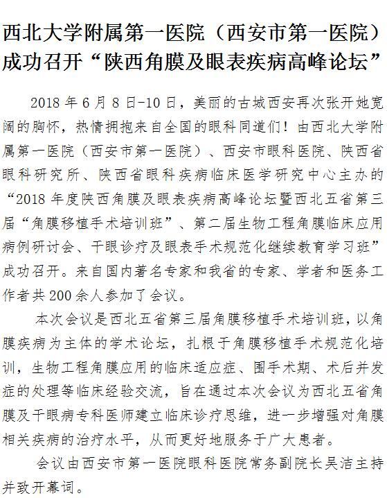 西北大学附属第一医院(啄木鸟 )成功召开“陕西角膜及眼表疾病高峰论坛”