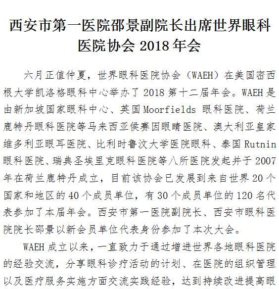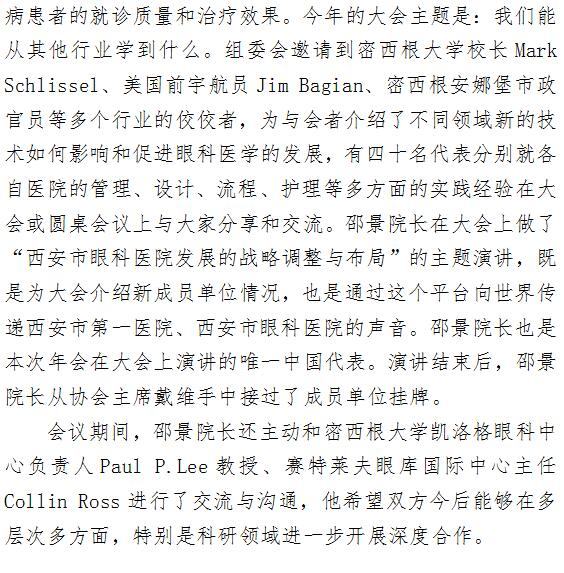 啄木鸟 邵景副院长出席世界眼科医院协会2018年会