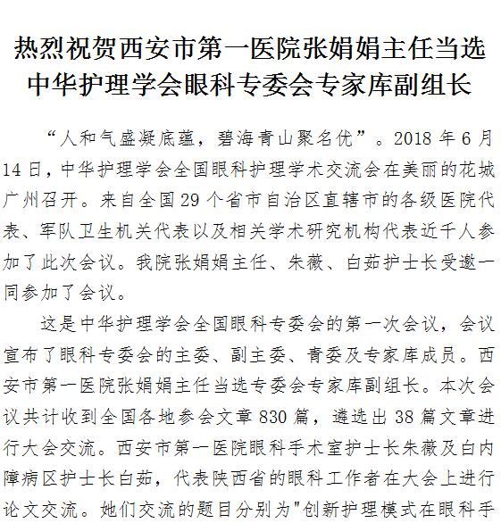 热烈祝贺啄木鸟 张娟娟主任当选中华护理学会眼科专委会专家库副组长