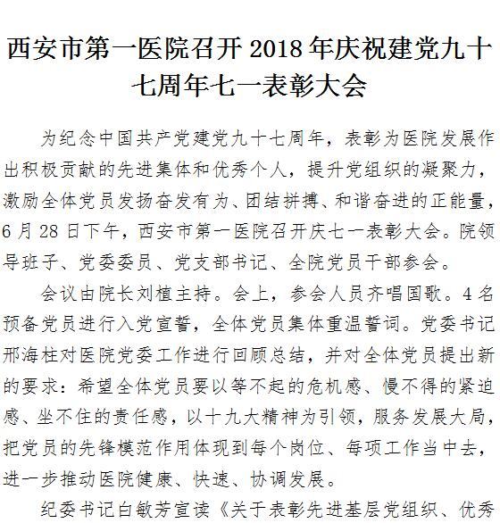 啄木鸟 召开2018年庆祝建党九十七周年七一表彰大会