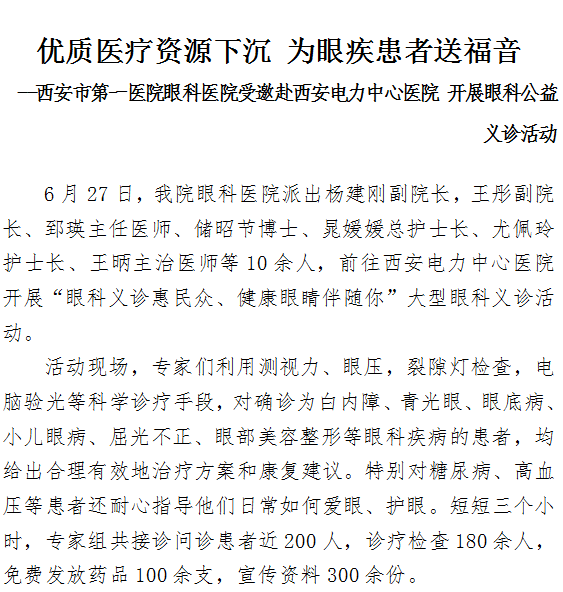 啄木鸟 眼科医院受邀赴西安电力中心医院 开展眼科公益义诊活动
