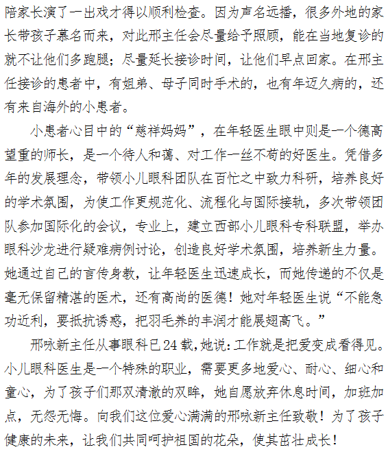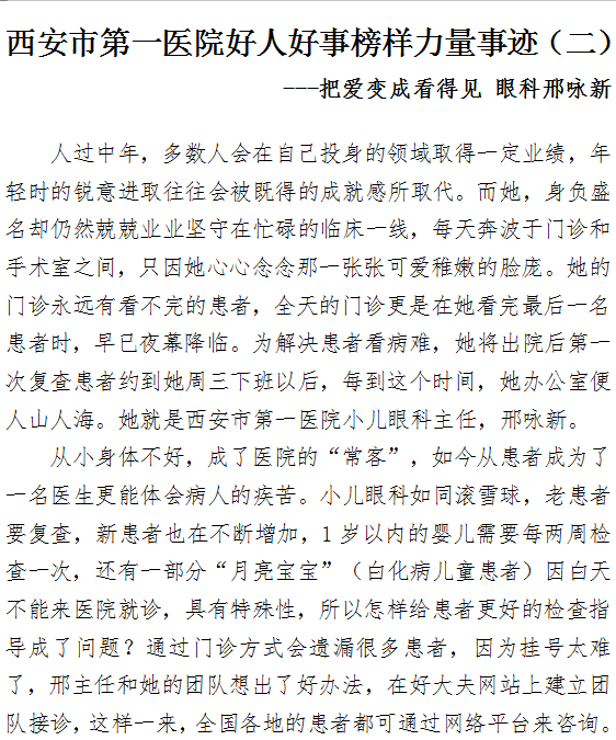 啄木鸟 好人好事榜样力量事迹(二) ---把爱变成看得见 眼科邢咏新