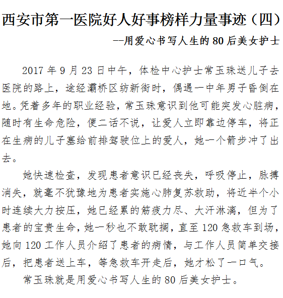 啄木鸟 好人好事榜样力量事迹(四) --用爱心书写人生的80后美女护士