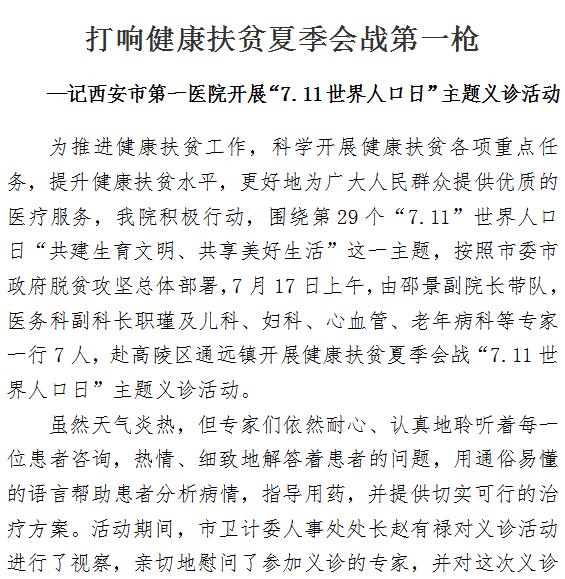 打响健康扶贫夏季会战第一枪 —记啄木鸟 开展“7.11世界人口日”主题义诊活动