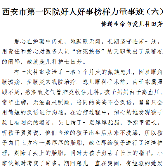 啄木鸟 好人好事榜样力量事迹(六) --传递生命与爱儿科田芳