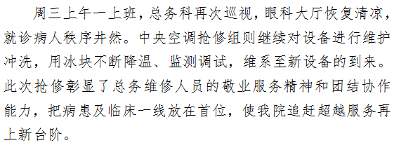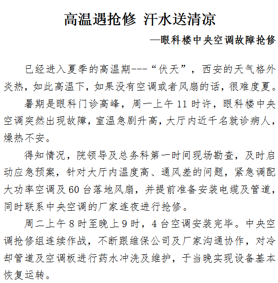 高温遇抢修 汗水送清凉 —眼科楼中央空调故障抢修