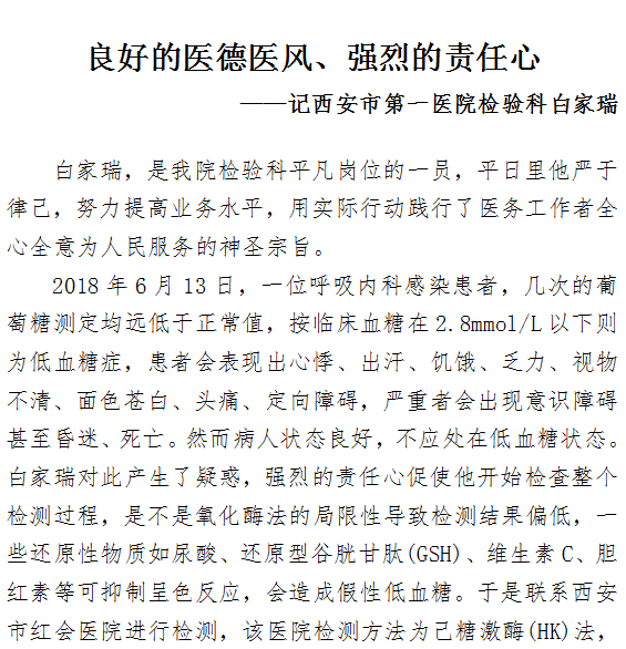 良好的医德医风、强烈的责任心 ——记啄木鸟 检验科白家瑞