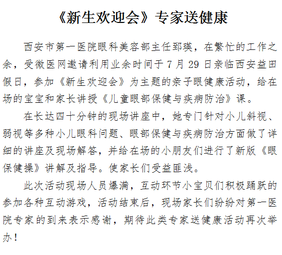 《新生欢迎会》专家送健康