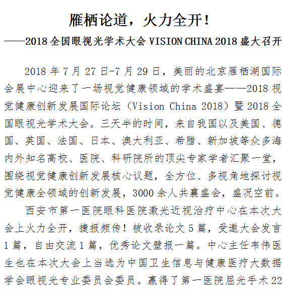 雁栖论道,火力全开!——2018全国眼视光学术大会VISION CHINA 2018盛大召开