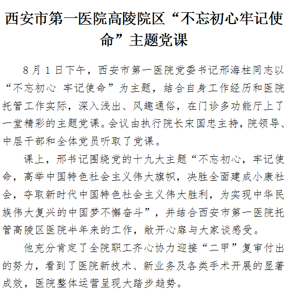 啄木鸟 高陵院区“不忘初心牢记使命”主题党课