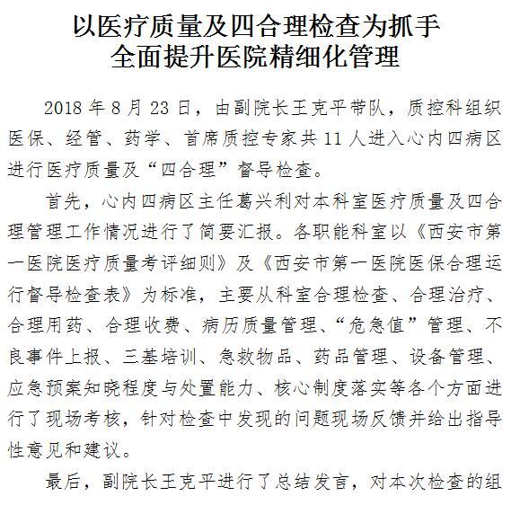 以医疗质量及四合理检查为抓手全面提升医院精细化管理