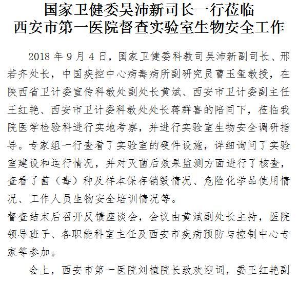 国家卫健委吴沛新司长一行莅临啄木鸟 督查实验室生物安全工作