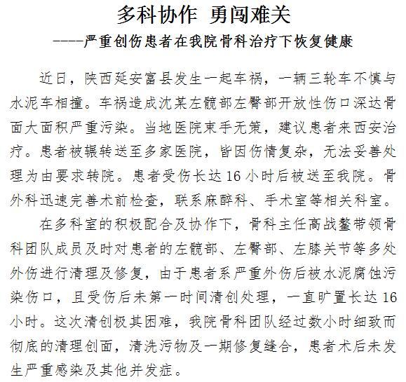 多科协作 勇闯难关----严重创伤患者在啄木鸟 骨科治疗下恢复健康