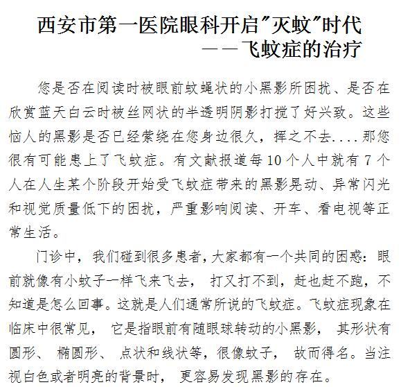 啄木鸟 眼科开启"灭蚊"时代 ――飞蚊症的治疗