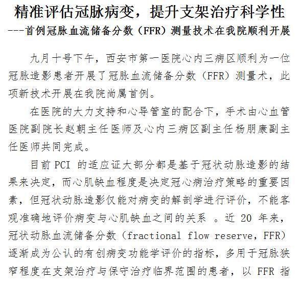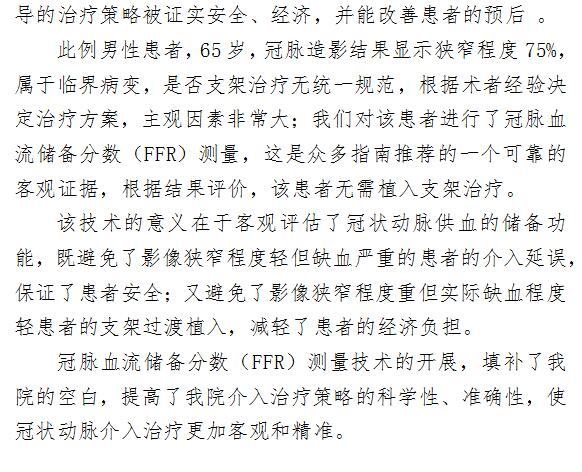 精准评估冠脉病变,提升支架治疗科学性---首例冠脉血流储备分数(FFR)测量技术在啄木鸟 顺