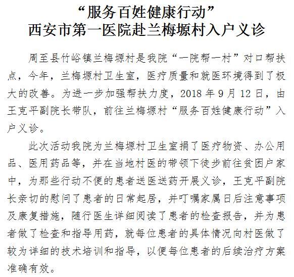 “服务百姓健康行动” 啄木鸟 赴兰梅塬村入户义诊
