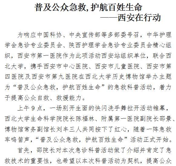 普及公众急救,护航百姓生命——西安在行动
