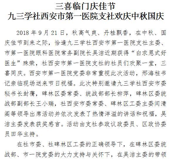 三喜临门庆佳节九三学社啄木鸟 支社欢庆中秋国庆