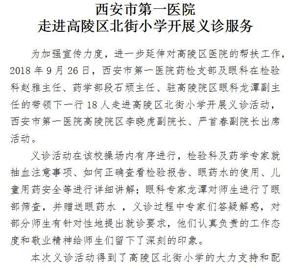 啄木鸟 走进高陵区北街小学开展义诊服务