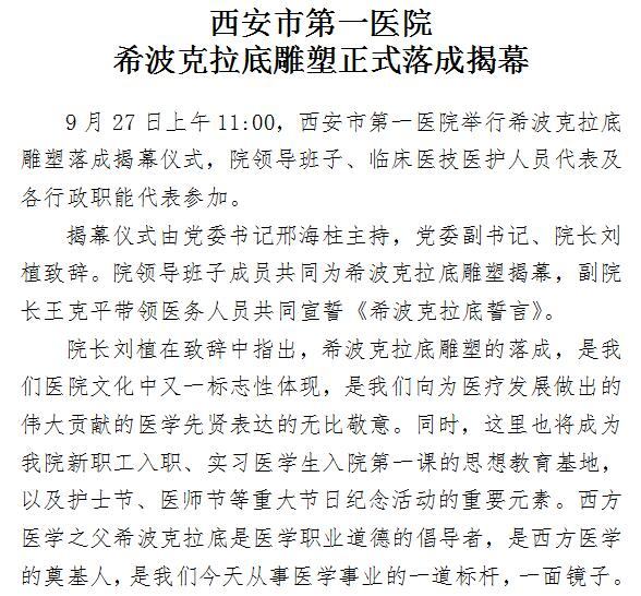 啄木鸟 希波克拉底雕塑正式落成揭幕