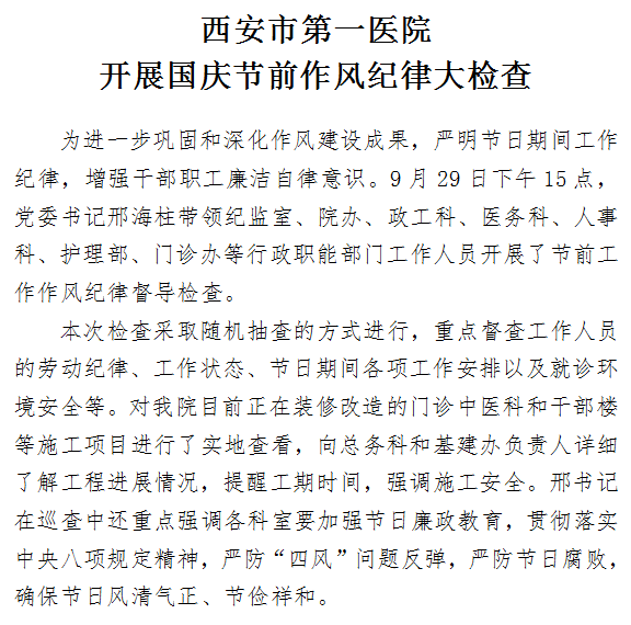 啄木鸟 开展国庆节前作风纪律大检查