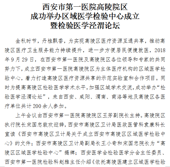 啄木鸟 高陵院区成功举办区域医学检验中心成立暨检验医学泾渭论坛