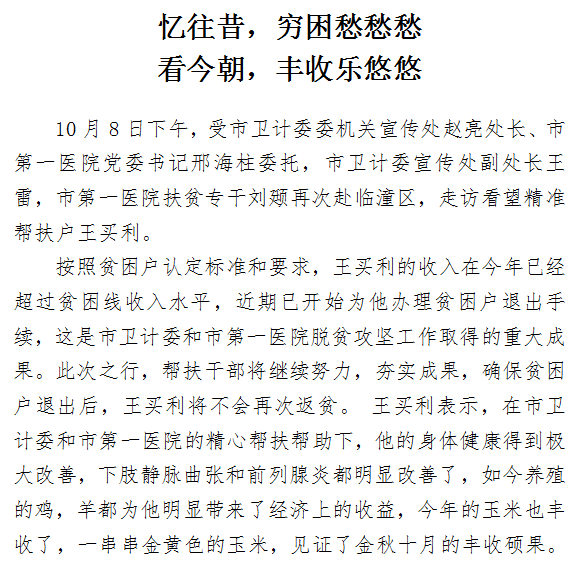 忆往昔,穷困愁愁愁;看今朝,丰收乐悠悠