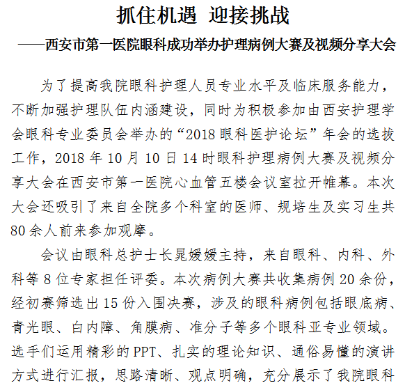 啄木鸟 眼科成功举办护理病例大赛及视频分享大会