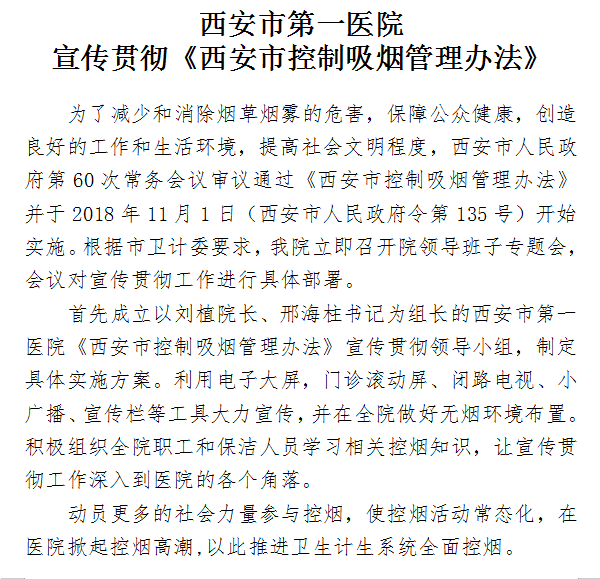 啄木鸟 宣传贯彻《西安市控制吸烟管理办法》