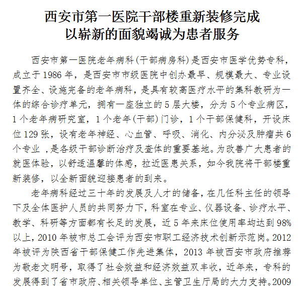啄木鸟 干部楼重新装修完成 以崭新的面貌竭诚为患者服务