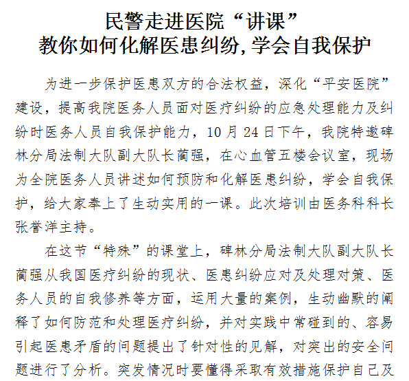民警走进医院“讲课” 教你如何化解医患纠纷,学会自我保护