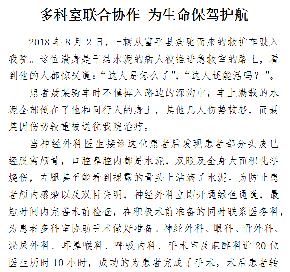 多科室联合协作 为生命保驾护航