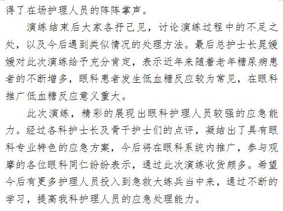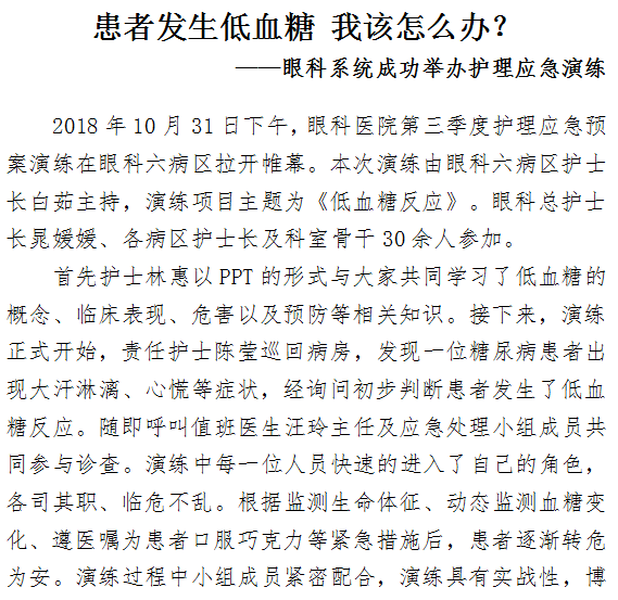 患者发生低血糖 我该怎么办? ——眼科系统成功举办护理应急演练