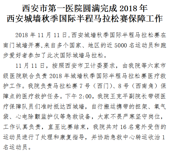 啄木鸟 圆满完成2018年 西安城墙秋季国际半程马拉松赛保障工作