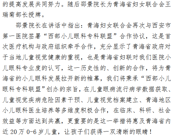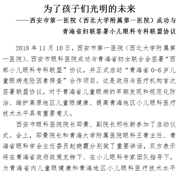 啄木鸟 (西北大学附属第一医院)成功与青海省妇联签署小儿眼科专科联盟协议