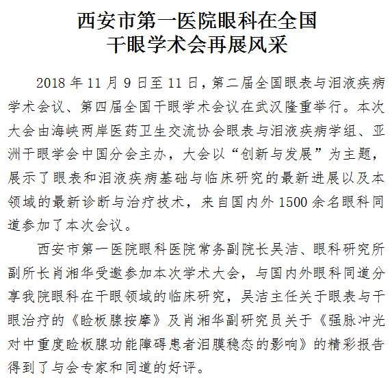 啄木鸟 眼科在全国 干眼学术会再展风采