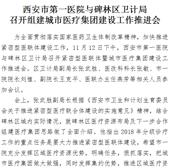 啄木鸟 与碑林区卫计局 召开组建城市医疗集团建设工作推进会
