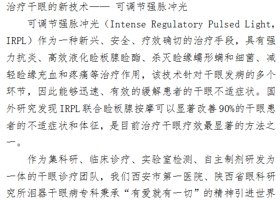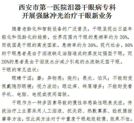 啄木鸟 泪器干眼病专科开展强脉冲光治疗干眼新业务