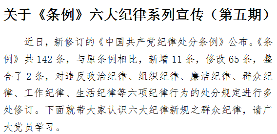关于《条例》六大纪律系列宣传(第五期)