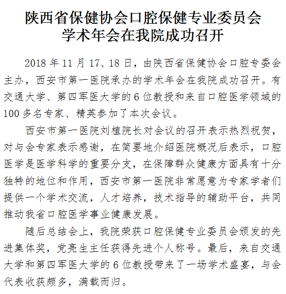 陕西省保健协会口腔保健专业委员会学术年会在啄木鸟 成功召开